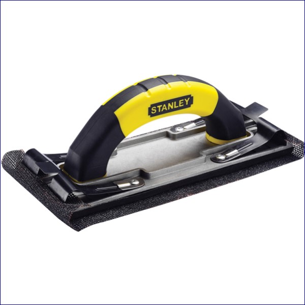 The Stanley 0 05 927 Hand Sander has a heavy-duty, ribbed aluminum body that stays flat and rigid. Its efficient clamp design holds paper or screen firmly in place. Fitted with a comfortable, bi-material handle. Accepts most sandpaper and sanding screens.