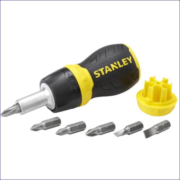 The Stanley 0-66-358 Ratchet Stubby Screwdriver comes with 6 x 1/4in hexagonal bits, which are stored in the screwdrivers removable end cap for quick and easy bit changes on different screw types. It has an easy to use ratchet mechanism with screw and unscrew direction twist action handle.