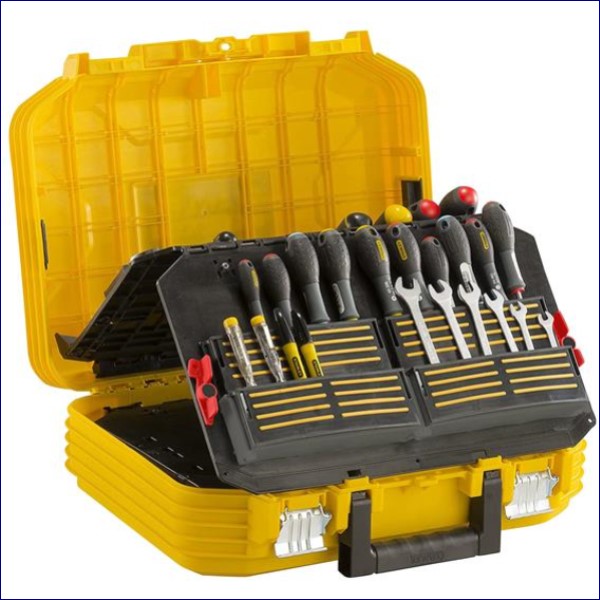 The Stanley FatMax® Technicians Suitcase is made from tough, reinforced fibreglass and is fitted with durable metal latches, a name tag holder and a padlock eye for increased security.