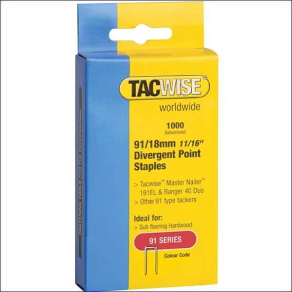 TAC0287 | Tacwise 91 Narrow Crown Divergent Point Staples 18mm – Electric Tackers Pack 1000