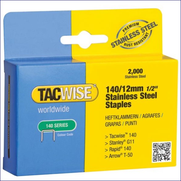 1 x Pack of 2,000 Tacwise 140 Stainless Steel Staples 12mm