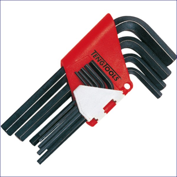 This Teng Tools 9 piece set of hexagon keys is supplied in a handy folding plastic holder for easy storage. The keys are made from chrome vanadium steel for strength and durability. They have a long arm which allows access to more difficult to reach places, and a short arm which ensures excellent torque and leverage.