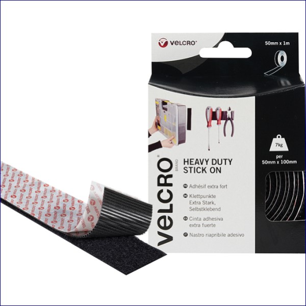 VEL60241 | VELCRO® Brand VELCRO® Brand Heavy-Duty Stick On Tape 50mm x 1m Black