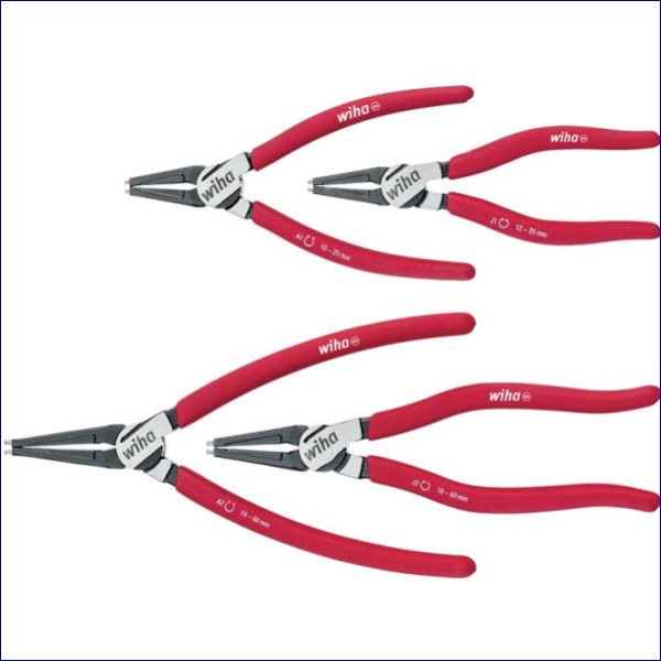 This 4 Piece Wiha Classic Circlip Plier Set with MagicTips® safety locking function. Fitted with Wiha Classic grips for increased comfort. Contains: