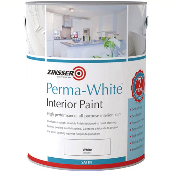 ZINPWIS25L | ZINSSER PERMA WHITE INTERIOR PAINT SATIN WHITE 2.5L ZN7050001C1