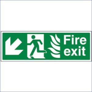 SSHTM17 | HOSPITAL COMPLIANT 400mm X 150mm FIRE EXIT `RUNNING MAN FLAME` DOWN LEFT