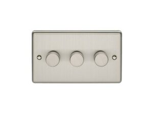 ELEN3DLEDSS | EUROLITE ENHANCE DECORATIVE SATIN STAINLESS STEEL 3 GANG 400W/LED 2 WAY DIMMER SWITCH