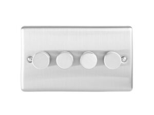 ELEN4DLEDSS | EUROLITE ENHANCE DECORATIVE SATIN STAINLESS STEEL 4 GANG 400W/LED 2 WAY DIMMER SWITCH